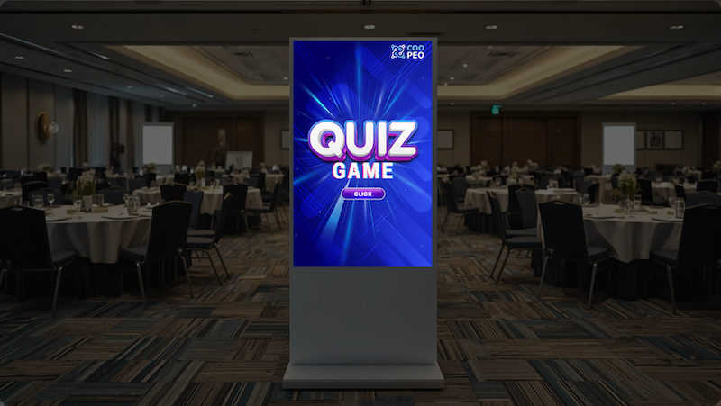 สร้าง Engagement ภายในงานแสดงสินค้า / ออกบูธของคุณได้มากยิ่งขึ้น ด้วยจอทัชสกรีนเกมส์ตอบคำถาม โดยเกมส์ตอบคำถามนั้น จะเน้นไปยังกลุ่มลูกค้าที่พอรู้จักแบรนด์ของคุณ หรือมีการให้ข้อมูลภายในบูธแสดงสินค้าก่อนเริ่มเกมส์